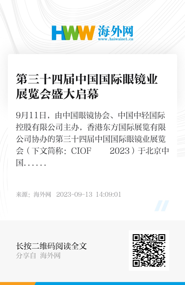 9月11日,由中国眼镜协会、中国中轻国际控股有限公司主办,香港东方国际展览有限公司协办的第三十四届中国国际眼镜业展览会(下文简称:CIOF 2023)于北京中国国际展览中心(静安庄馆)启幕。作为中国最早举办的专业眼镜展览会,中国(北京)国际眼镜业展览会已走过三十三载岁月,已成为国内外知名的眼镜行业品牌展会和重要商贸交流平台。