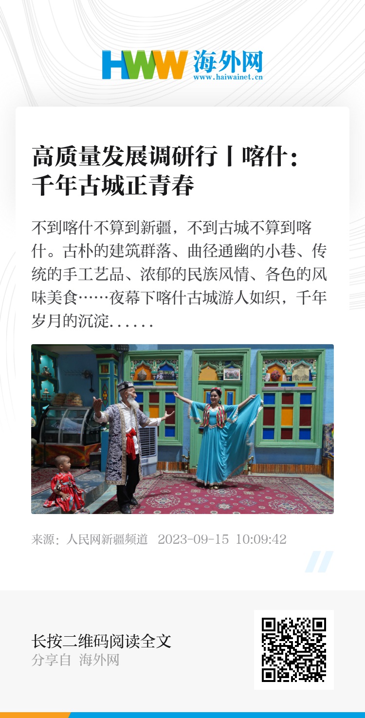 “8月,喀什古城景区接待游客123万人次,首次单月超过百万人次。”喀什古城管委会宣传科副科长顾晶晶说,古城最不缺的就是网红打卡点,汗巴扎夜市、喀什古城油画一条街、喀什印象一条街等,到处都是这座城市的标本和切片,古老而时尚。(人民日报记者 张义钊 人民网记者陈新辉)