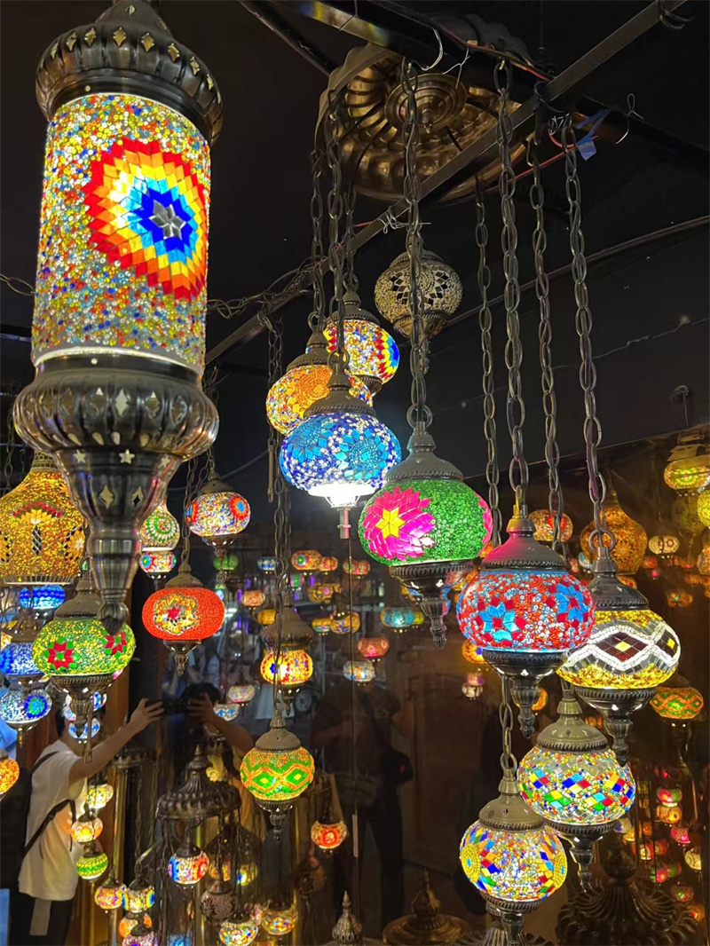 喀什古城日光旅拍门前五彩斑斓的的琉璃灯。人民日报记者 于洋摄