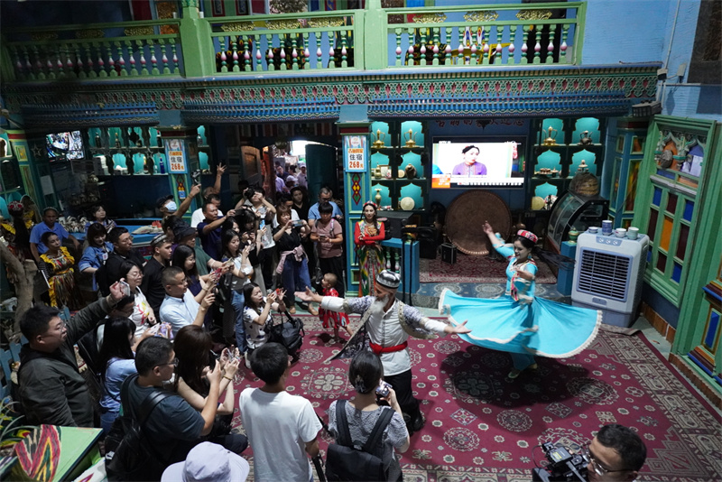 游客在“古丽的家”观看表演。人民日报记者 白阳摄