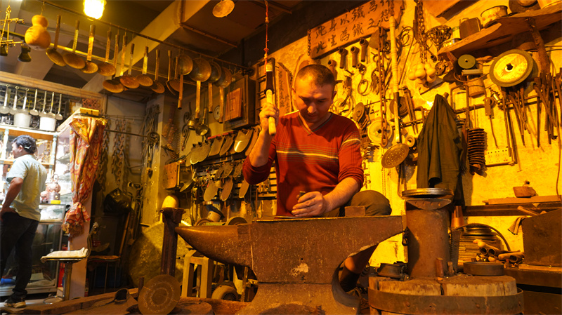 喀什古城网红打卡点之一坎土曼铁业社。人民日报记者 张义钊摄