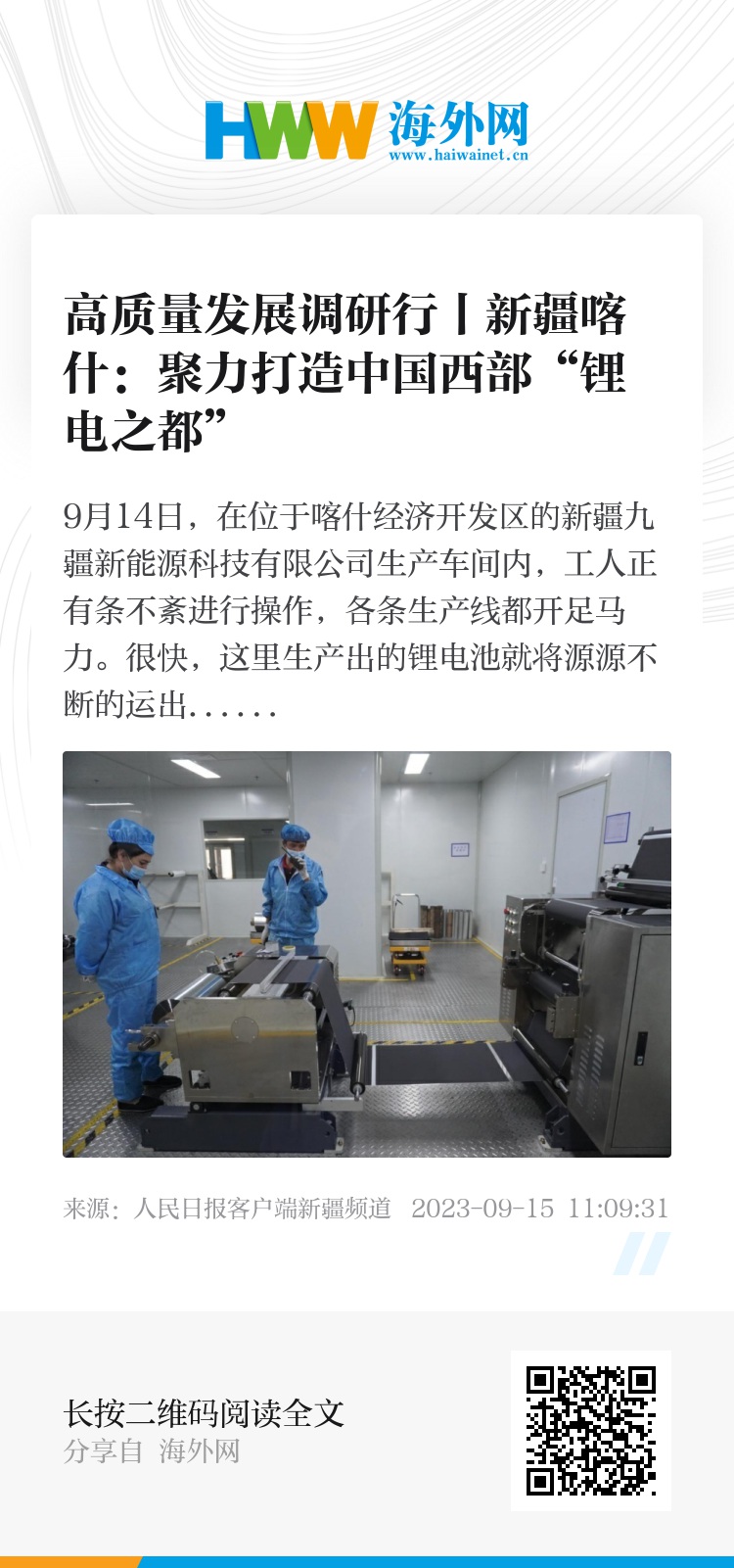 “今年5月7日我们正式投产。由于喀什地区周边国家市场空间很大,因此我们的产品供不应求。”九疆新能源科技有限公司生产部部长刘明贤对记者表示。