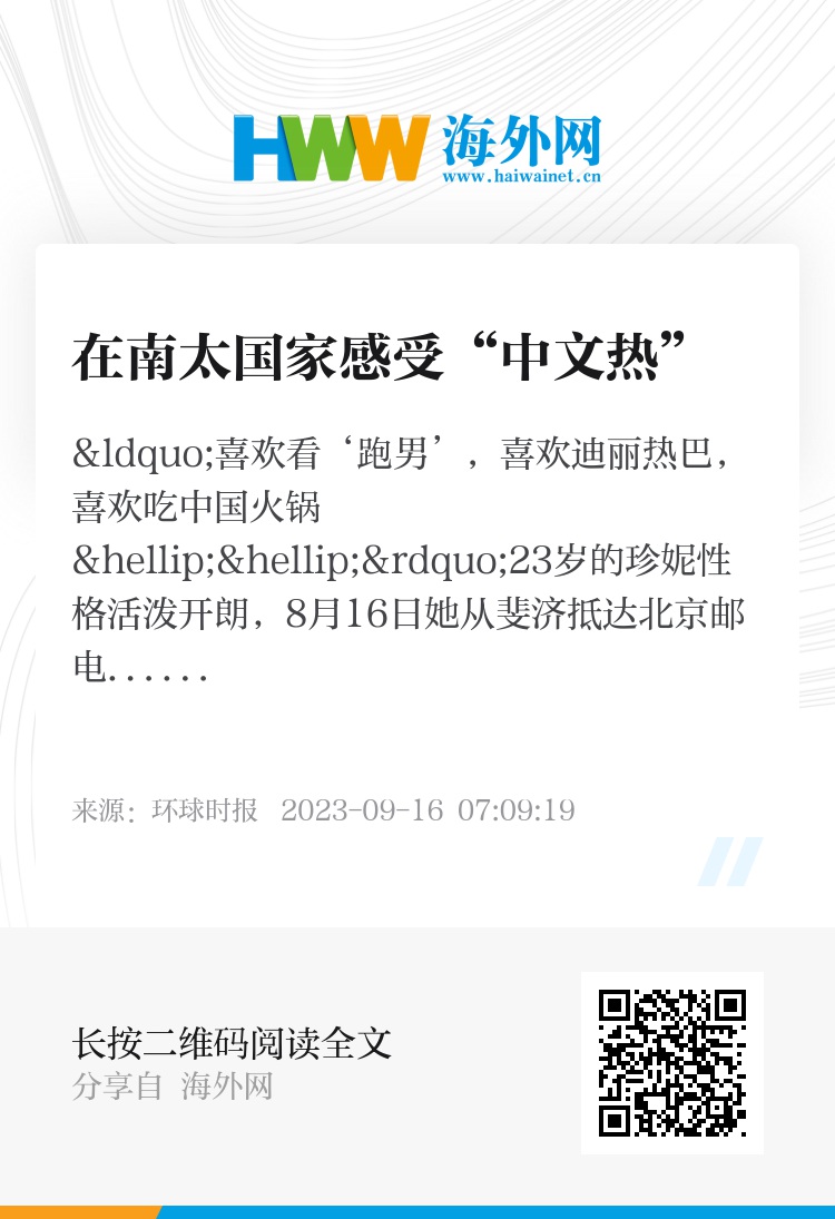 斐济是最早同新中国建交的太平洋岛国。建交48年以来,中国帮助斐济建造道路、桥梁、码头,带去先进的菌草和水稻种植技术,当地人也对中国和中国文化越来越感兴趣。李旖旎说:“在斐济学习中文已经是一种潮流,当前报名参加我们社会班课程人越来越多,经常超出名额上限,教室都坐不下了。”