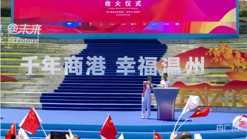 杭州第19届亚运会火炬传递温州站收火仪式在城市阳台举行(央广网发 温州市委宣传部供图)