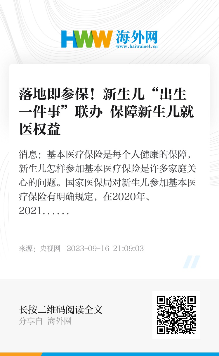 央视网消息:基本医疗保险是每个人健康的保障,新生儿怎样参加基本医疗保险是许多家庭关心的问题。