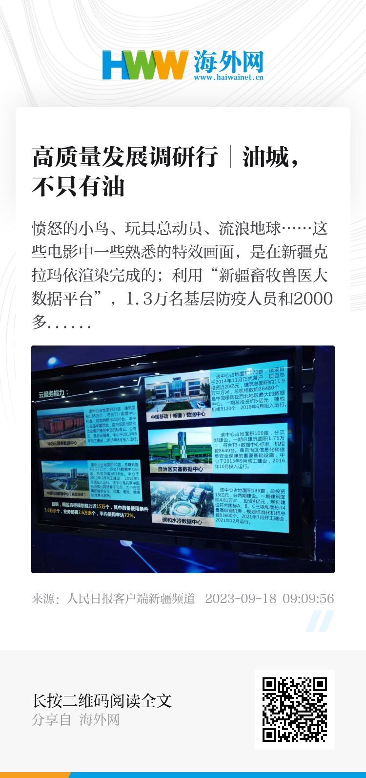 利用“新疆畜牧兽医大数据平台”,1.3万名基层防疫人员和2000多名管理员使用无纸化防疫系统、动物检疫电子出证系统,管理着140万个养殖场(户),在克拉玛依,可以“管”全疆牛羊;