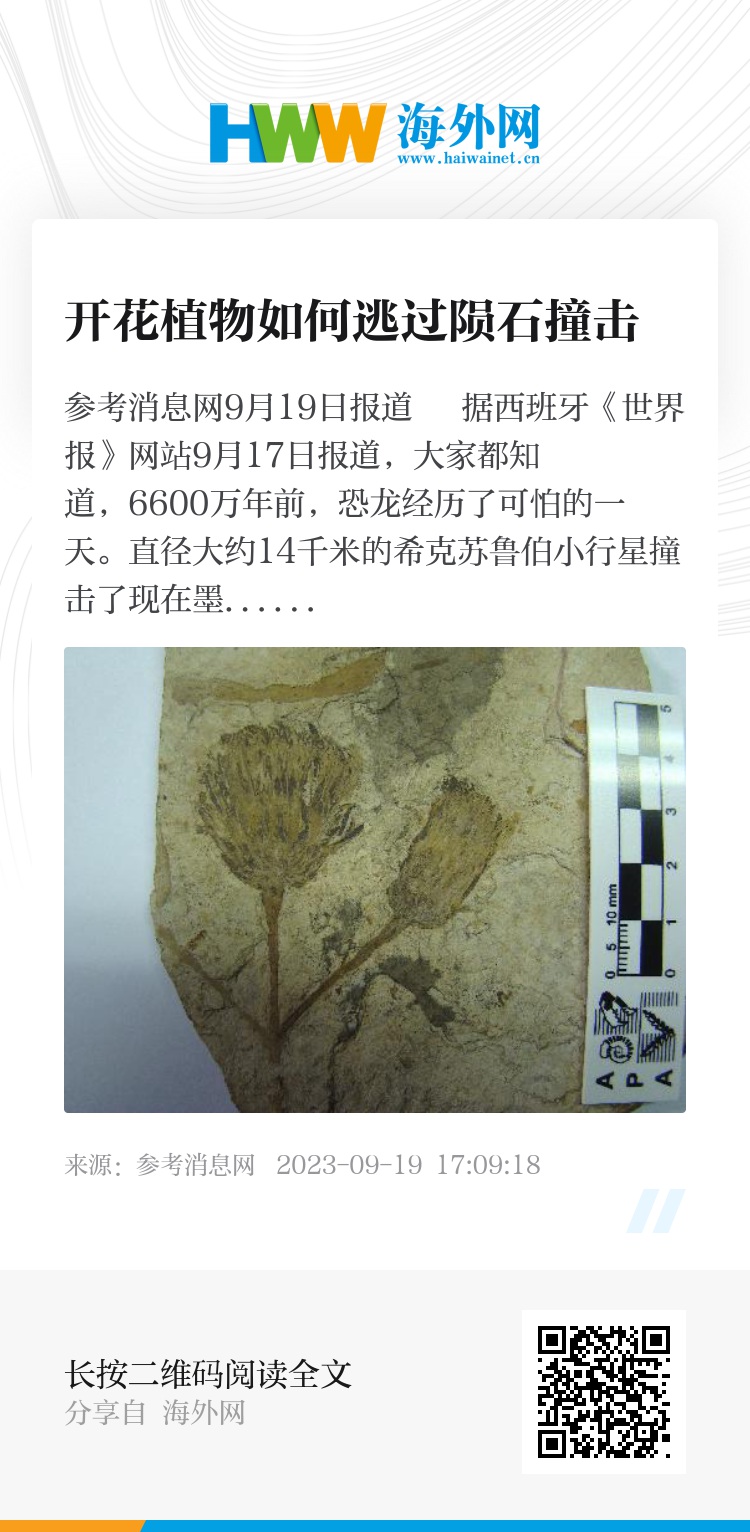 参考消息网9月19日报道 据西班牙《世界报》网站9月17日报道,大家都知道,6600万年前,恐龙经历了可怕的一天。直径大约14千米的希克苏鲁伯小行星撞击了现在墨西哥南部的尤卡坦半岛,留下了一个宽180千米、深900米的陨石坑,终结了方圆数千公里的所有生命痕迹,引发了数百米高的海啸和持续数周的地震。