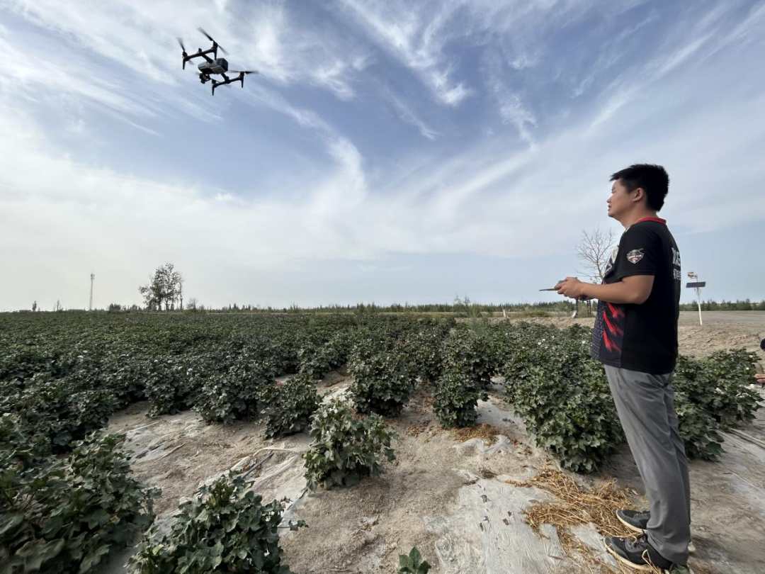 “早在2021年项目刚开始时,当地的种植户根本不相信我们两个人能管理3000亩地。”艾海鹏告诉记者,以往的棉花种植,3000亩地的耕种管收通常需要雇用15—20个工人,现如今,“我们利用遥感无人机、农业无人机、农业物联网等软硬件设施,基本上实现了机器替代。”