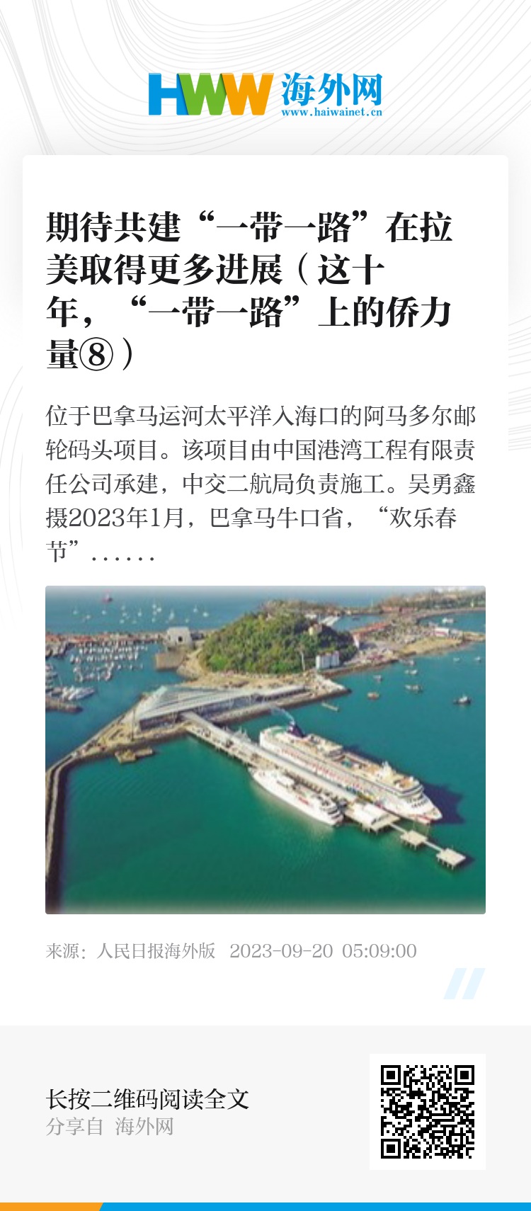 2017年6月,中国同巴拿马建交。同年11月,巴拿马成为首个同中国签署“一带一路”合作谅解备忘录的拉美和加勒比国家。