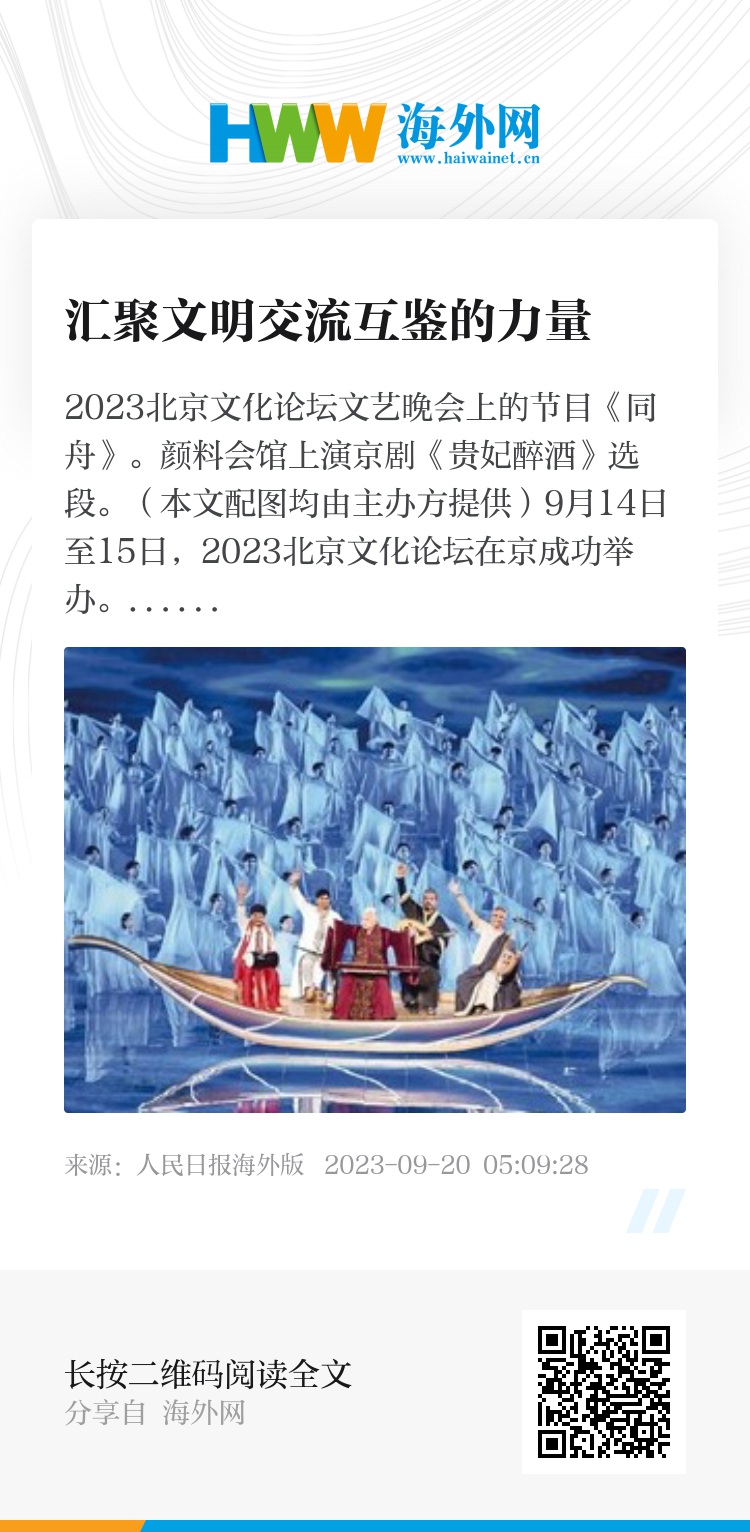 9月14日至15日,2023北京文化论坛在京成功举办。600多位中外嘉宾跨越山海相聚北京,围绕“传承·创新·互鉴”永久主题和“传承优秀文化 促进交流合作”年度主题,共议文化遗产保护传承,共话文明交流互鉴。
