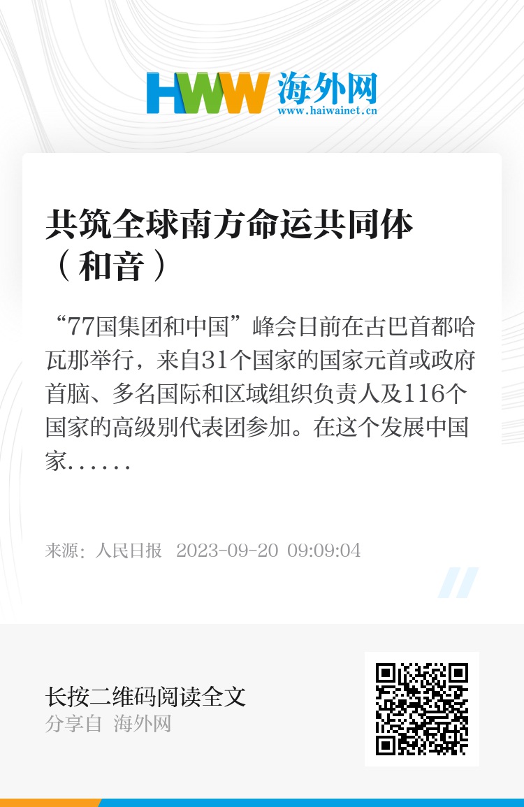 峰会通过《哈瓦那宣言》,呼吁全面改革国际金融结构,构建更包容、协调的全球经济治理格局;反对对发展中国家实施单方面制裁。这些充分表明,77国集团和中国践行真正的多边主义,坚定维护国际公平正义,努力提升发展中国家话语权,维护广大发展中国家共同利益,是团结合作、共谋发展的正义力量。联合国秘书长古特雷斯在致辞中说,“77国集团和中国”始终拥护多边主义,在联合国框架下发挥重要作用。