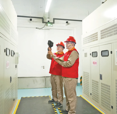 国网天津电力工作人员正在进行用电检查,为技能大赛提供电力保障。