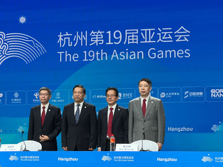 发布会上,3位杭州亚运会(亚残运会)主新闻发言人依次亮相,分别是杭州亚组委执行秘书长、杭州亚运会赛事总指挥部办公室副主任陈卫强,杭州亚组委副秘书长、办公室主任、杭州亚运会赛事总指挥部办公室副主任毛根洪,杭州亚组委宣传部部长、主媒体中心执行指挥长许德清。