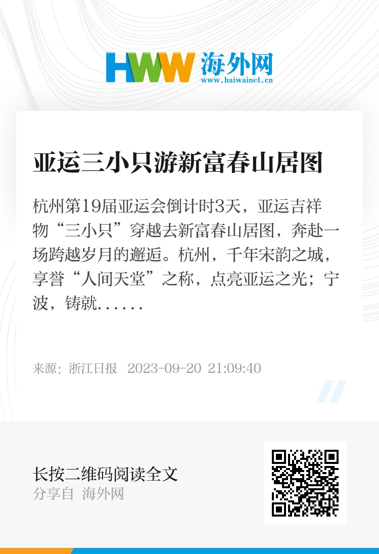 杭州第19届亚运会倒计时3天,亚运吉祥物“三小只”穿越去新富春山居图,奔赴一场跨越岁月的邂逅。
