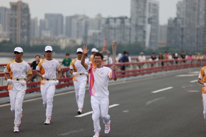 他传递火炬的位置,正是6月13日下午他跳江救人的杭州西兴大桥(钱江三桥)。