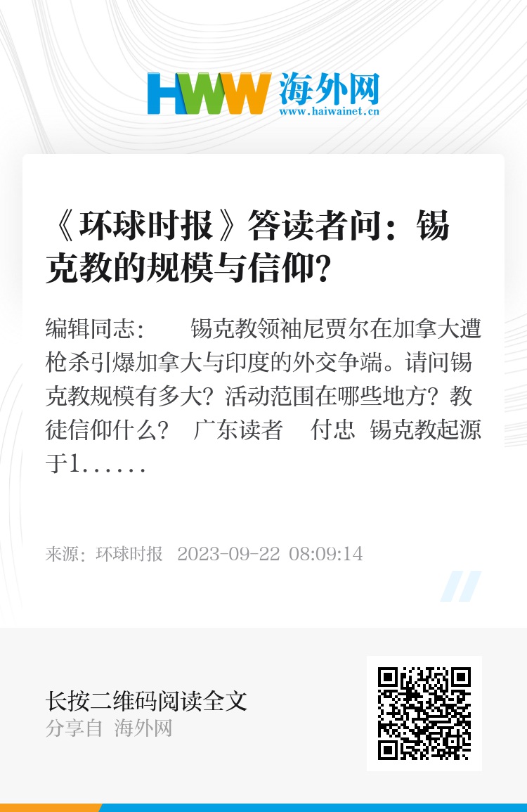 锡克教领袖尼贾尔在加拿大遭枪杀引爆加拿大与印度的外交争端。请问锡克教规模有多大?活动范围在哪些地方?教徒信仰什么?