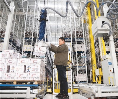 今年以来,河北省邯郸市永年区通过邀请专家培训外贸知识、组织企业出海“抢订单”、免费为企业代办进出口资质等方式,助力当地紧固件企业拓宽海外市场。图为在永年区一紧固件生产企业,工人在智能仓储车间操控设备装卸货物。