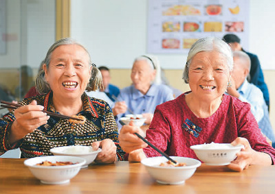 浙江省衢州市衢江区廿里镇斋堂新村老人们正在就餐。