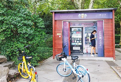游客在杭州西湖景区亚运会主题便利店购买商品。