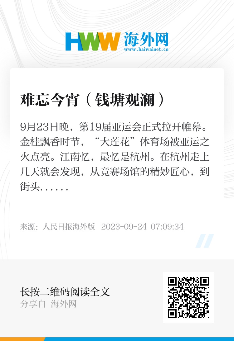 今夜,这场启幕于秋分之日的盛会,向来自亚洲各国各地区的体育健儿送出了一份东道主的美好祝福——拼搏的汗水会浇灌梦想之树,在丰收的日子结下累累硕果。十几天会期里,来自亚洲45个国家和地区的运动员不仅在浙江同场竞技,共襄体育盛会,还会体验诗意江南的历史人文、感受绿水青山的自然生态,并在赛事运行、云上服务、场馆保障的诸多细节里感受蓬勃的创新基因。