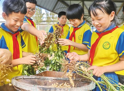 9月19日,河北省秦皇岛市海港区石门寨学区下平山小学学生体验收获农作物。曹建雄摄(人民视觉)