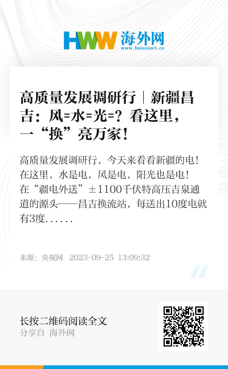 高质量发展调研行,今天来看看新疆的电!在这里,水是电,风是电,阳光也是电!在“疆电外送”±1100千伏特高压吉泉通道的源头——昌吉换流站,每送出10度电就有3度是新能源绿电。今年这里的电跨域千里点亮杭州,新疆也是杭州亚运会、亚残运会绿电供应量最大的省份。