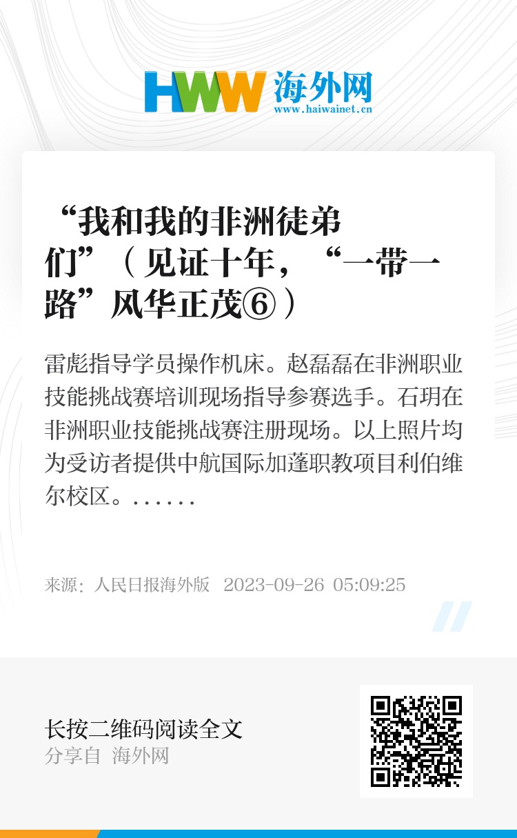 在加纳,升级改造23所职校;在加蓬、科特迪瓦和乌干达新建12所职校;升级改造154所肯尼亚职校,覆盖该国全部47个郡县……“一带一路”倡议提出10年来,中航国际已在非洲10国新建或升级180余所职业技术学校,每年培训2万余名师生。2014年入职的石玥,第一项工作就是购置培训和比赛所用的刀具、量具。