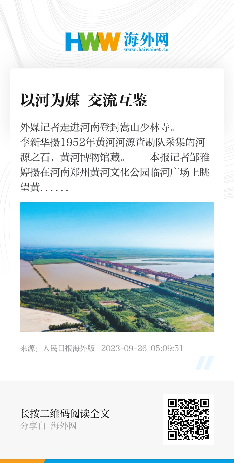 穿过绿意葱茏的沿黄生态廊道,走进郑州黄河文化公园,恢弘的炎黄二帝巨塑、青铜大鼎、中华百位历史名人群雕等生动展现了黄河文化的源远流长。在黄河博物馆,外籍记者们把黄河水利科学研究院副院长江恩慧围在中间,听她讲解黄河之名的由来、黄河对中华文明的贡献。