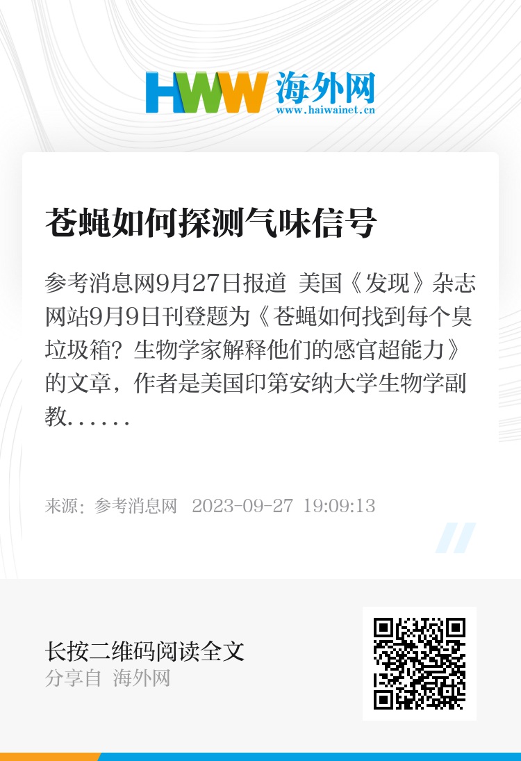 参考消息网9月27日报道 美国《发现》杂志网站9月9日刊登题为《苍蝇如何找到每个臭垃圾箱?生物学家解释他们的感官超能力》的文章,作者是美国印第安纳大学生物学副教授克里斯蒂娜·皮卡德,内容编译如下: