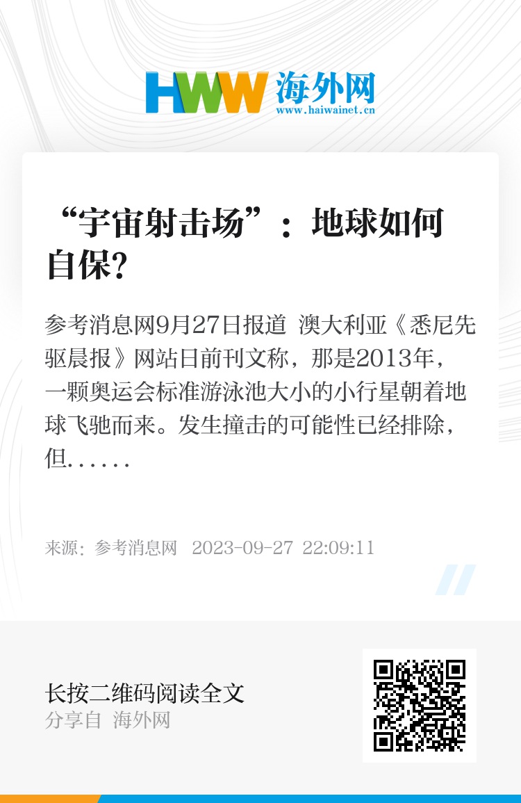 参考消息网9月27日报道 澳大利亚《悉尼先驱晨报》网站日前刊文称,那是2013年,一颗奥运会标准游泳池大小的小行星朝着地球飞驰而来。发生撞击的可能性已经排除,但这对天文学家来说是一件大事。科学家保罗·乔达斯解释了这块大岩石是如何与地球擦肩而过的。当时,它比很多卫星都更接近地球,通过望远镜可以清晰地看见它。