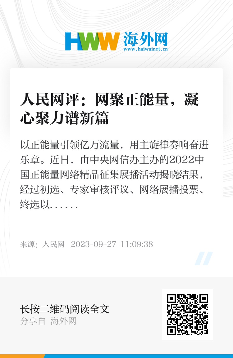 以正能量引领亿万流量,用主旋律奏响奋进乐章。近日,由中央网信办主办的2022中国正能量网络精品征集展播活动揭晓结果,经过初选、专家审核评议、网络展播投票、终选以及结果公示,550件网络精品脱颖而出。