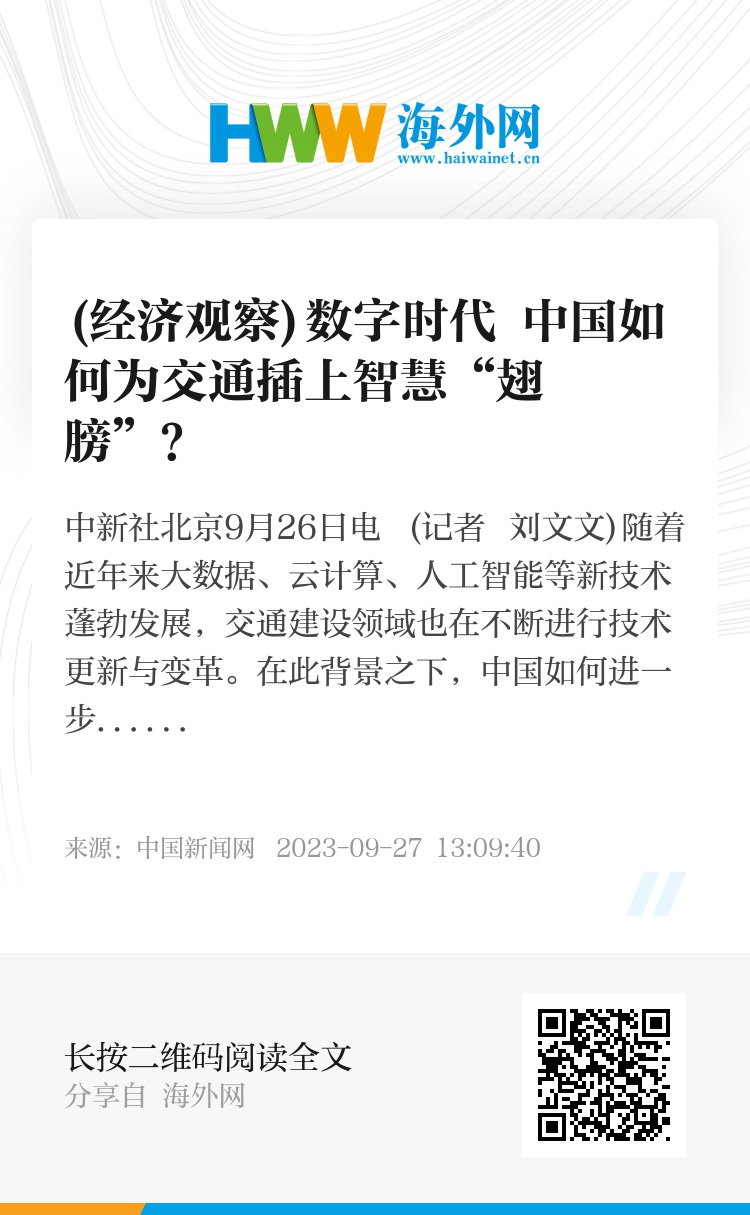 中新社北京9月26日电 (记者 刘文文)随着近年来大数据、云计算、人工智能等新技术蓬勃发展,交通建设领域也在不断进行技术更新与变革。在此背景之下,中国如何进一步拓展数字化、智能化交通基础设施的应用空间,为交通插上“智慧”翅膀?25至26日举行的全球可持续交通高峰论坛(2023)上,多位与会代表围绕此议题展开深入探讨。