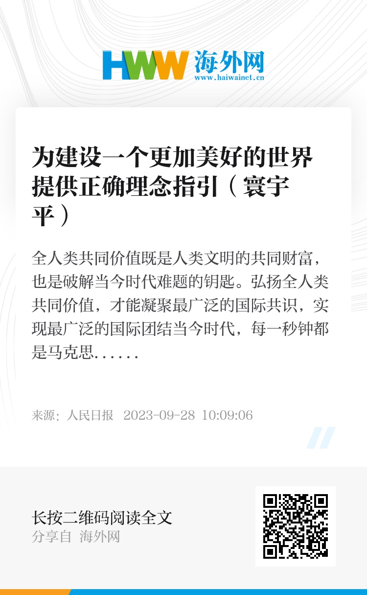 以全人类共同价值为指引,才能推动人类社会发展进步。个别西方大国长期将自身价值观视为“先进”价值观,将其他国家、其他文明的价值观视为“落后”价值观,热衷于对外搞价值观输出扩张。冷战结束后,所谓“历史终结论”一度甚嚣尘上,即是这种傲慢心理的体现。今天,个别西方大国刻意渲染所谓“民主对抗威权”虚假叙事,亦是这种价值观霸权的新变种。与这种在价值观问题上搞自我中心和二元对立的错误做法不同,全人类共同价值超越文明、国别、制度、党派的藩篱,凝练概括全人类的基本价值共识,得到了国际社会的广泛认同。弘扬和平、发展、公平、正义、民主、自由的全人类共同价值,已写入中国和许多国家的联合声明。