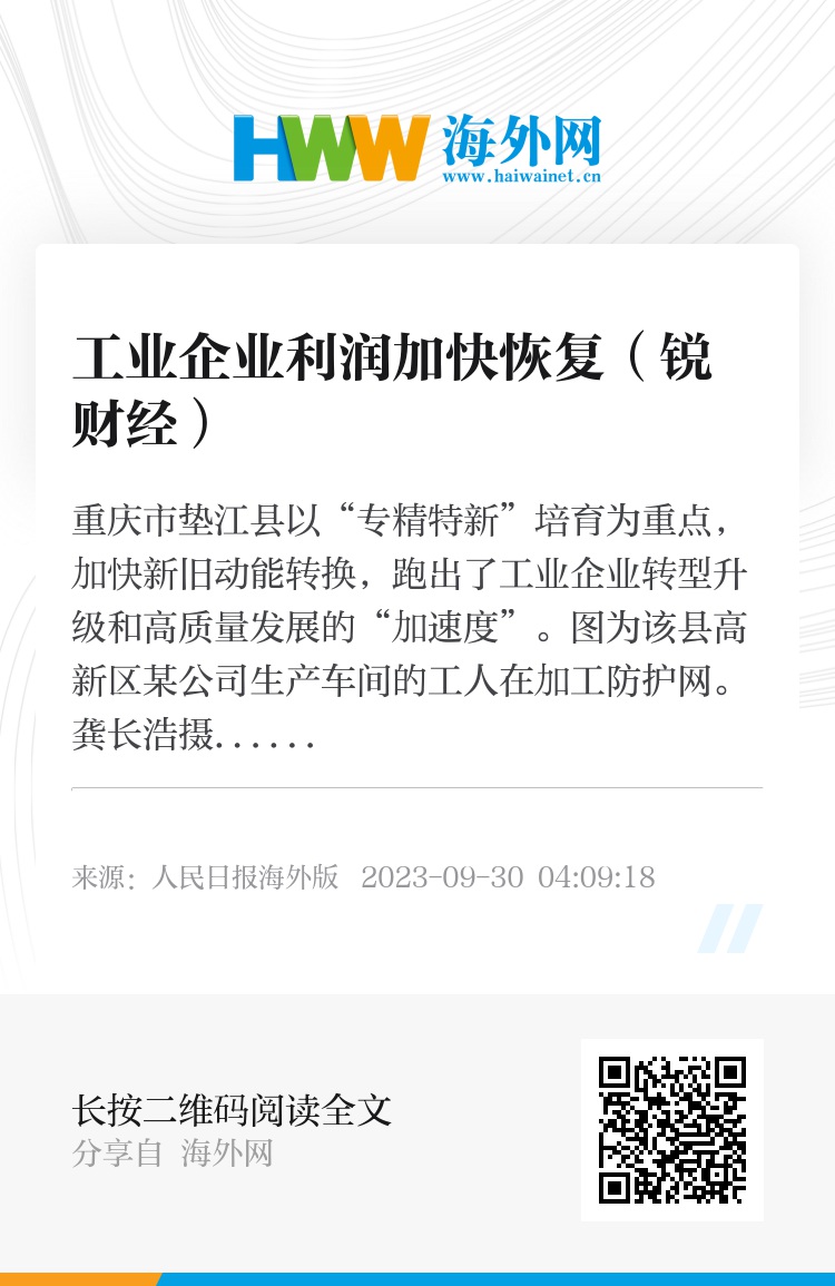 工业新动能持续壮大,新能源汽车、锂离子电池、光伏设备、动车组等产品生产较快增长,装备制造业发展动力不断增强。1—8月,装备制造业利润同比增长3.6%,增速较1—7月加快1.9个百分点。装备制造业利润增速高于规上工业平均水平15.3个百分点,持续引领工业企业利润稳步恢复。分行业看,电气机械、铁路船舶航空航天运输设备行业利润分别增长33%、32.5%,保持较高增速;汽车行业利润增长2.4%,增速加快1.4个百分点;电子行业受产销回升等因素带动,利润降幅收窄5.8个百分点。