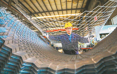 重庆市垫江县以“专精特新”培育为重点,加快新旧动能转换,跑出了工业企业转型升级和高质量发展的“加速度”。图为该县高新区某公司生产车间的工人在加工防护网。龚长浩摄(人民视觉)