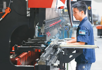 福建省福州市高新技术产业开发区落实支持企业科研成果转化落地、技改扩能、税费优惠等扶持政策,推动制造业高质量发展。图为开发区一家机械设备制造企业内,工人在生产线上赶制订单产品。王旺旺摄(人民视觉)