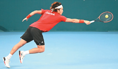 9月30日,中国选手张之臻战胜日本选手,夺得亚运会网球男子单打冠军。新华社记者 程 敏摄