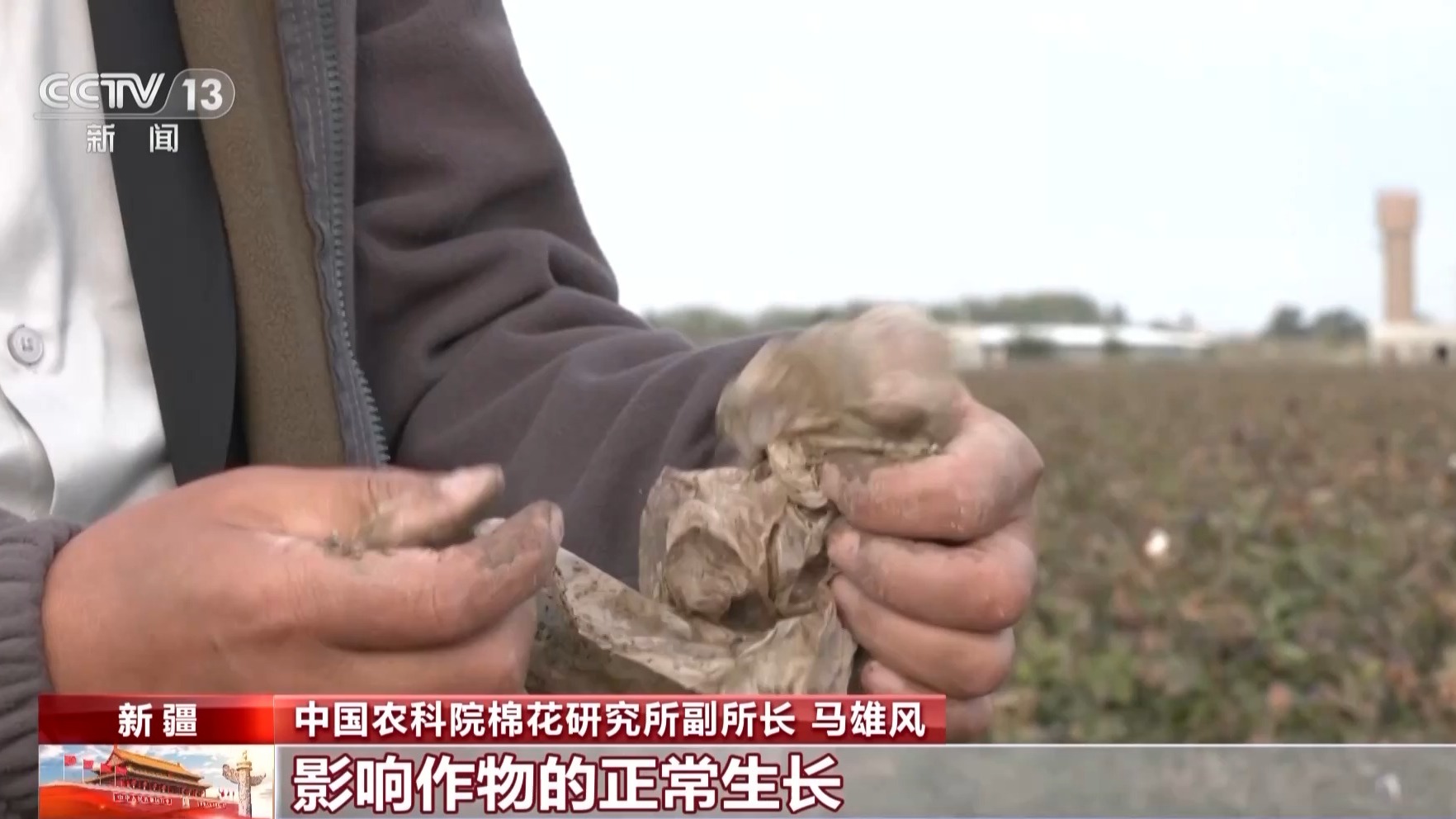 中国农科院棉花研究所副所长 马雄风:没有及时清理的农膜还可能被收获机器卷入其中,导致收获效率下降,棉花品质和后端产品都会受到很大影响。同时,这些残留的农膜也可能对土壤结构和肥力产生负面影响,影响作物的正常生长。