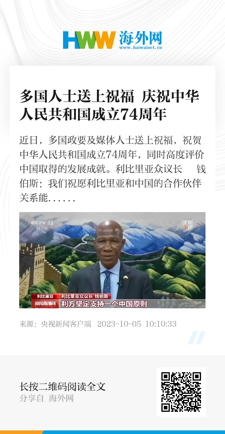 近日,多国政要及媒体人士送上祝福,祝贺中华人民共和国成立74周年,同时高度评价中国取得的发展成就。