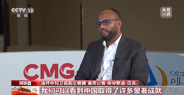 迪拜中阿卫视副总编辑 首席记者 穆罕默德·贝吉:我们可以看到中国取得了许多显著成就,不仅是传统的基础设施和制造行业,还延伸到人工智能、5G、芯片等高新科技领域。中国取得的发展成就无疑是巨大的。