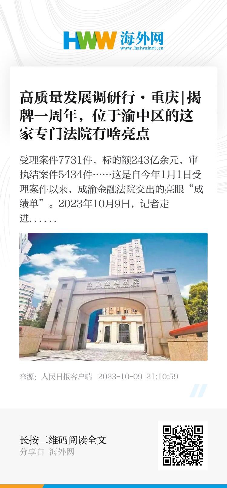 受理案件7731件,标的额243亿余元,审执结案件5434件……这是自今年1月1日受理案件以来,成渝金融法院交出的亮眼“成绩单”。