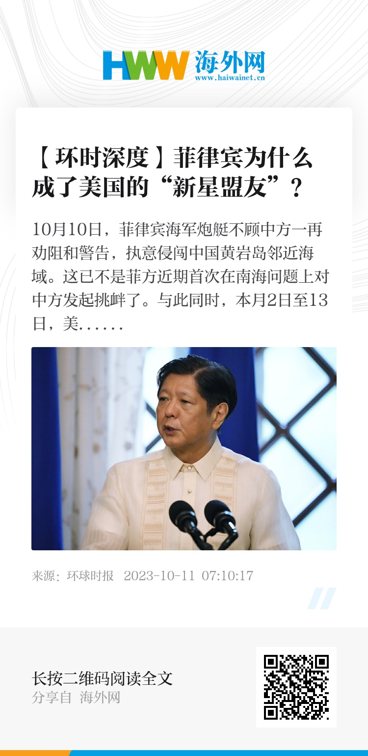 10月10日,菲律宾海军炮艇不顾中方一再劝阻和警告,执意侵闯中国黄岩岛邻近海域。这已不是菲方近期首次在南海问题上对中方发起挑衅了。与此同时,本月2日至13日,美菲等国正在菲律宾吕宋岛附近举行“齐心协力”联合军演,这里距离黄岩岛只有约340公里。美国《外交政策》杂志评论称,菲总统马科斯上台后,菲律宾地缘政治转变超出美国政府预期,该国成为美国在亚洲的“新星盟友”,这对美国在印太地区的安全联盟来说“意义非凡”。巴以冲突爆发后,菲律宾立即与美国站在一起力挺以色列,这与其他大部分东盟国家的表态大相径庭。8月15日,菲律宾出台新国家安全政策文件,强调菲寻求加强与盟友合作,并将台海冲突风险视为重大关切问题。看似四平八稳的表达背后,是菲律宾国防和外交政策意味深长的转型。是坚持东盟主导地位,不在大国间“选边站”,还是做美国的“新星盟友”?菲律宾转向背后又有哪些因素在推动呢?