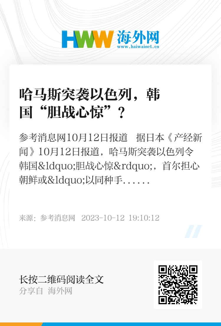 参考消息网10月12日报道 据日本《产经新闻》10月12日报道,哈马斯突袭以色列令韩国“胆战心惊”,首尔担心朝鲜或“以同种手段发动突袭”。为此,韩国正在增强军备。