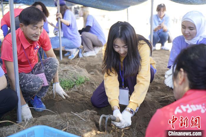 图为10月11日,外国游客在韩国锦山世界人参庆典现场体验采挖人参。中新社记者 刘旭 摄