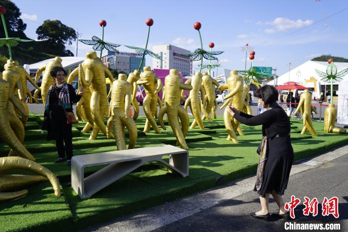 图为10月11日,游客在人参庆典参观。中新社记者 刘旭 摄