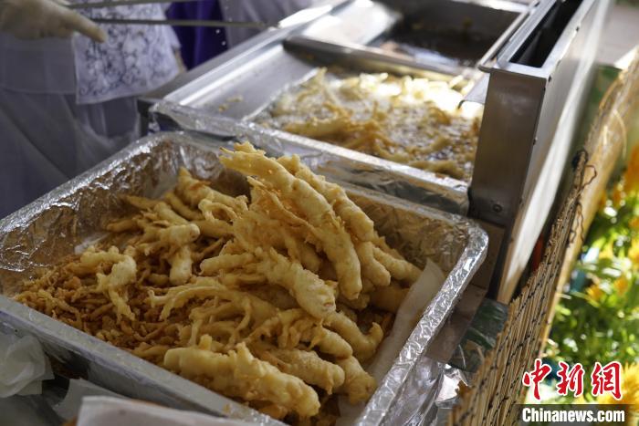 图为10月11日,人参庆典上出售的特色人参菜肴。中新社记者 刘旭 摄