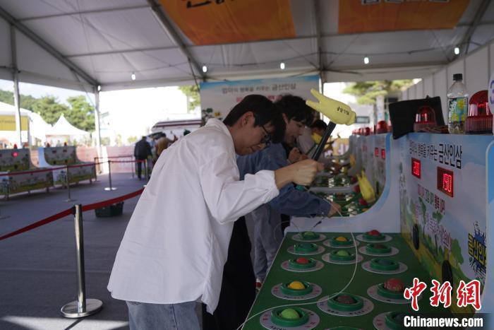 图为10月11日,游客在韩国锦山世界人参庆典现场体验采挖人参。中新社记者 刘旭 摄