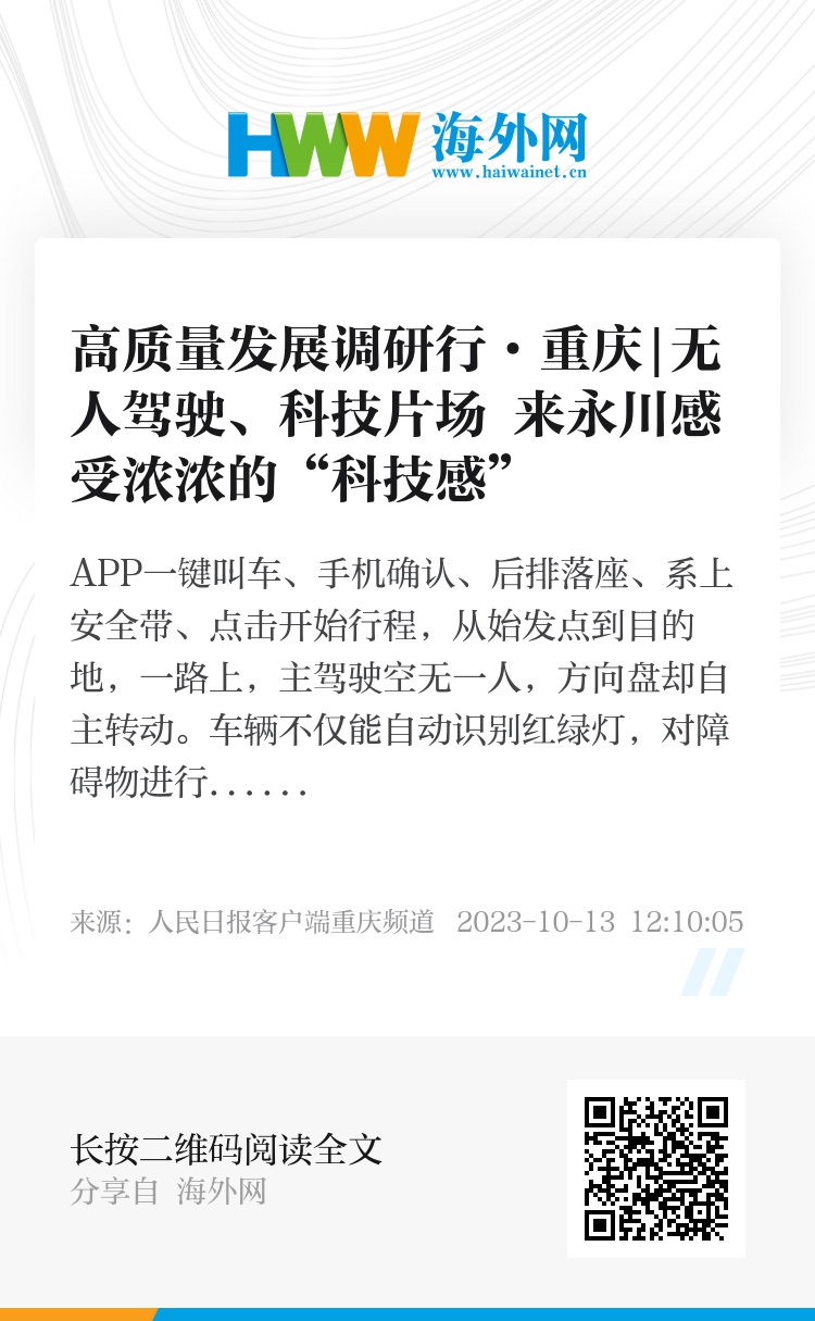 据了解,永川获批重庆市智能网联汽车政策先行区,建成西部自动驾驶开放测试和示范运营基地,实现全域1576平方公里、1385公里双向道路测试和示范运营,占全市开放路网总量的75%。山地、快速路、城市道路、丘陵道路等道路场景丰富,永江高速即将开放双向76公里道路,成为西部首条自动驾驶高速测试道路,推出典型山城测试场景30个,服务在测L4级车辆52台,占全市总量的76%。全方位部署5G通信路网环境,加快智能交通建设,拥有全国首条L4级自动驾驶公交线,百度“萝卜快跑”在国内率先实现全无人自动驾驶商业运营。