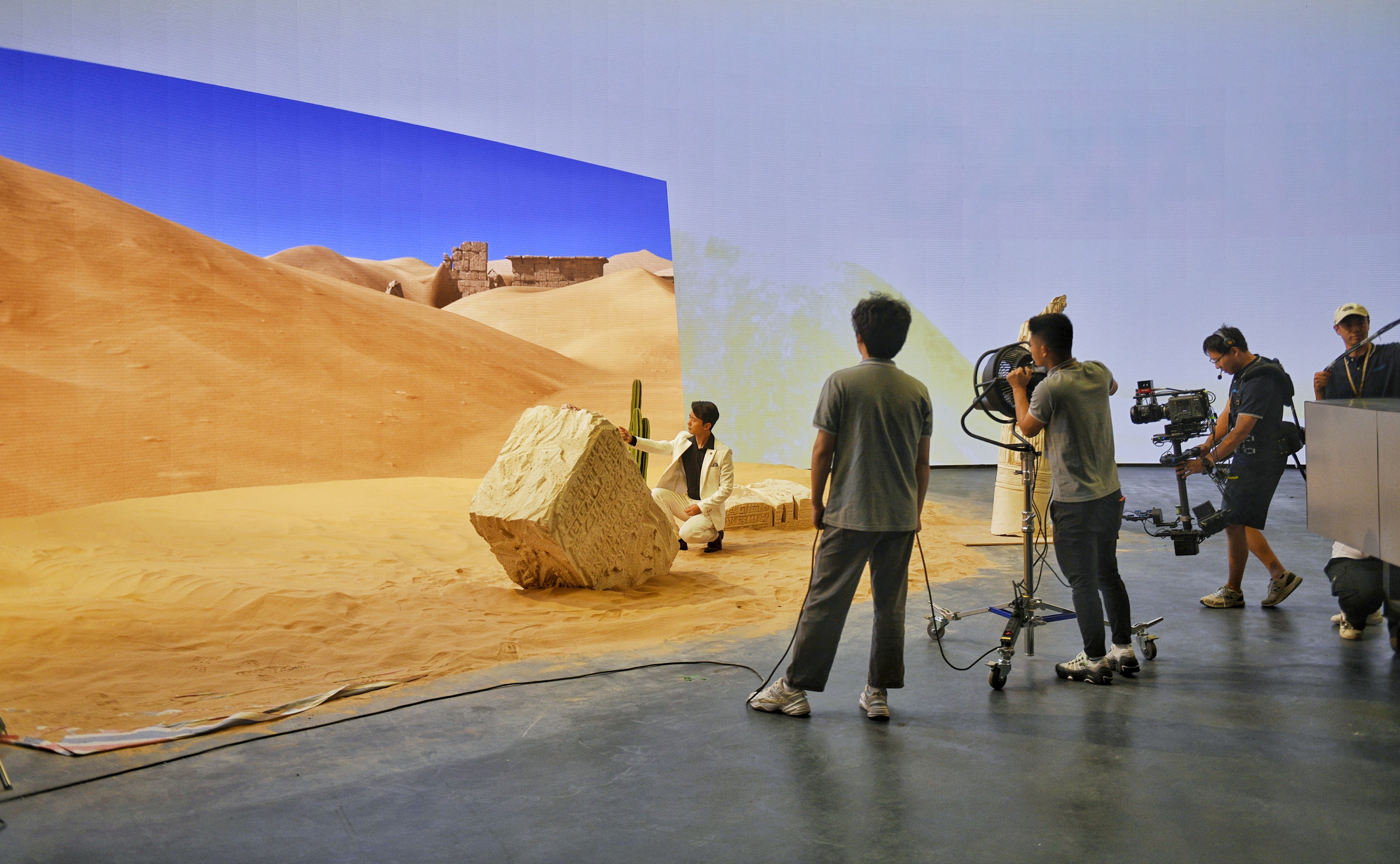 达瓦公司正在永川科技片场内的LED虚拟拍摄屏进行实时拍摄(永川融媒体供图)