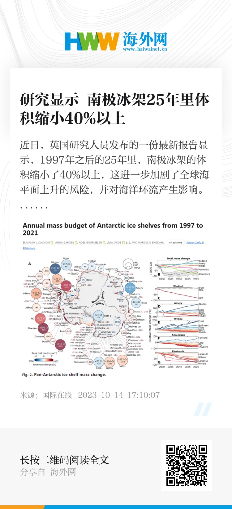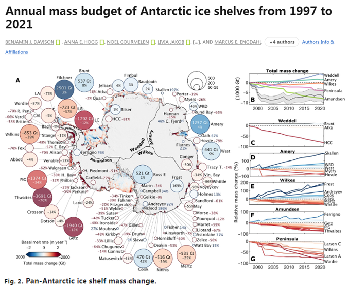 《科学进展》杂志网站截图(题图为泛南极冰架变化对比)